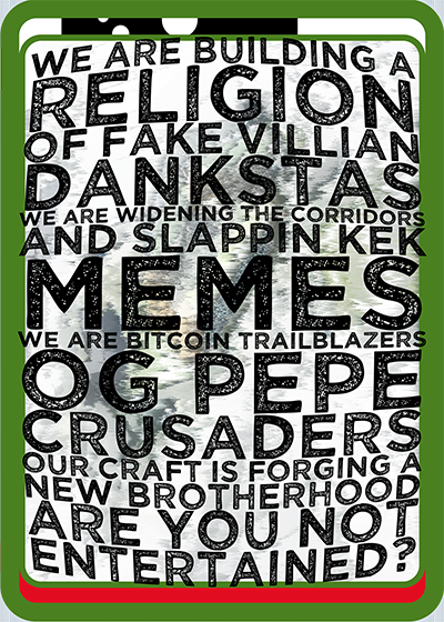 Thank you for enjoying my cryptoart on various timechains Assets are available for purchase on Dankset.io